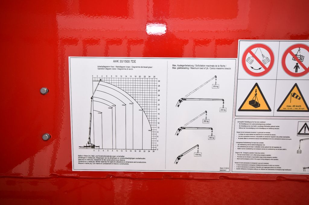 Auslegernutzlast (kg) 1.500 / 350 / 250